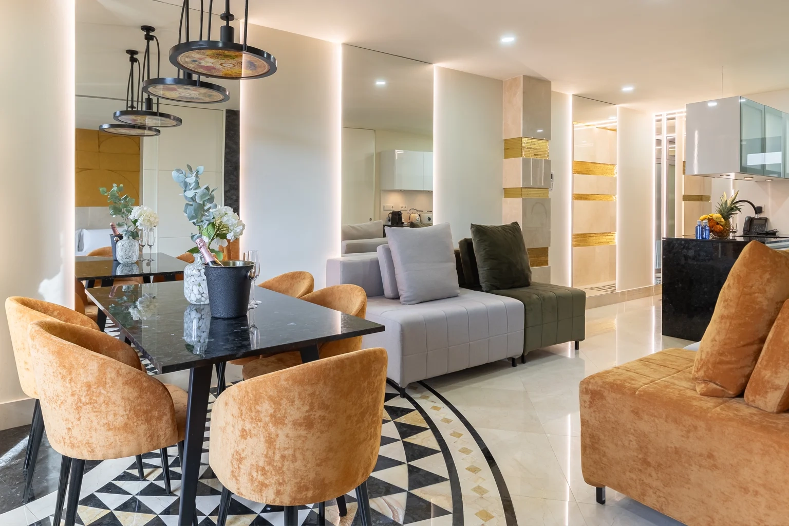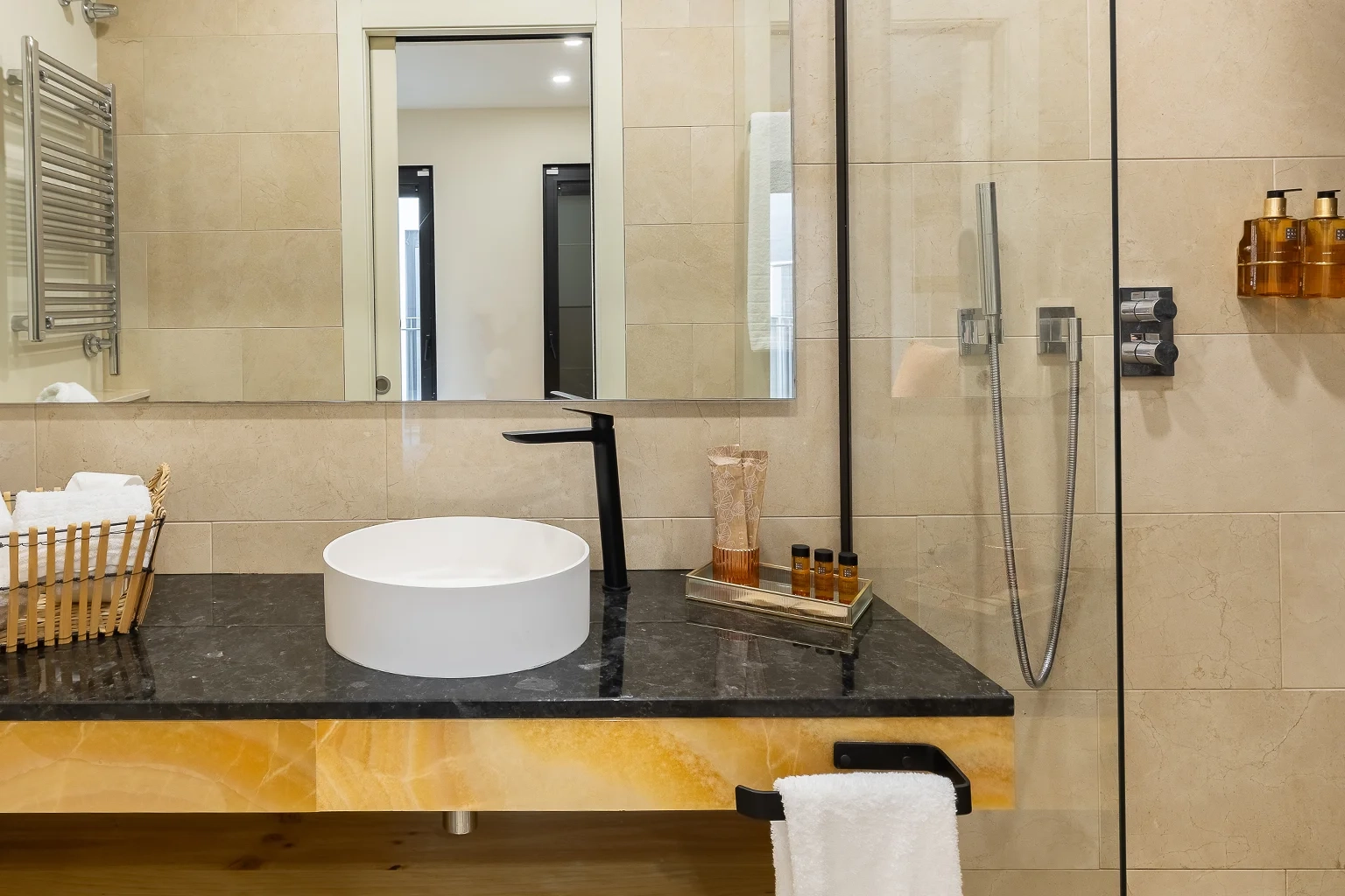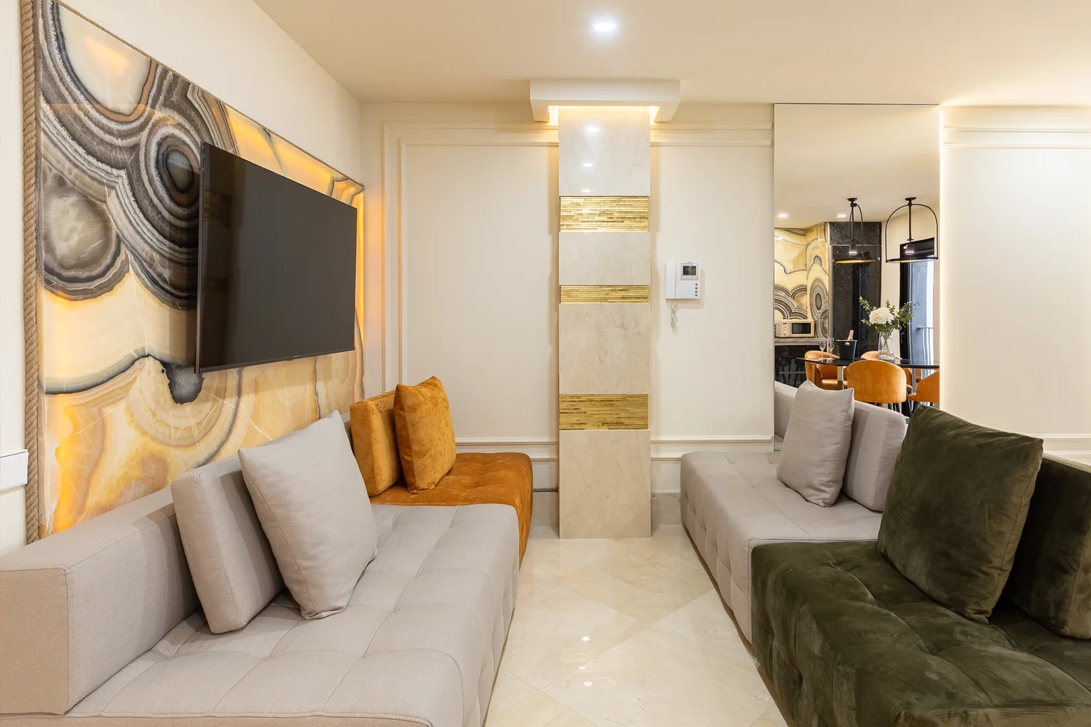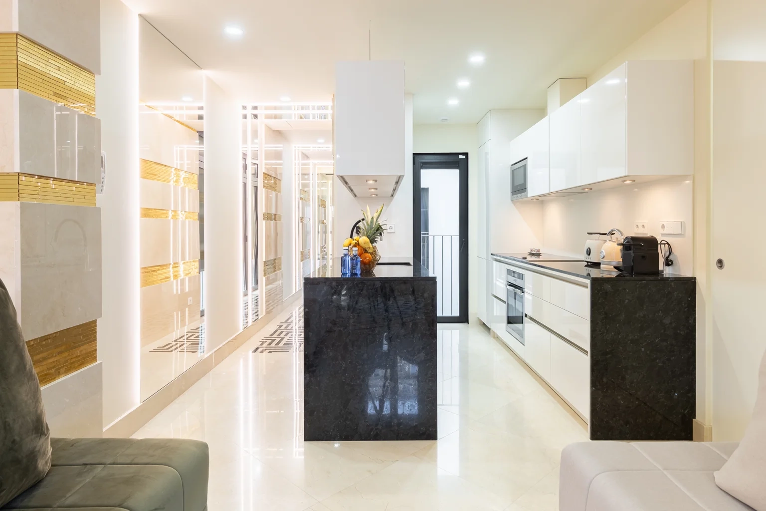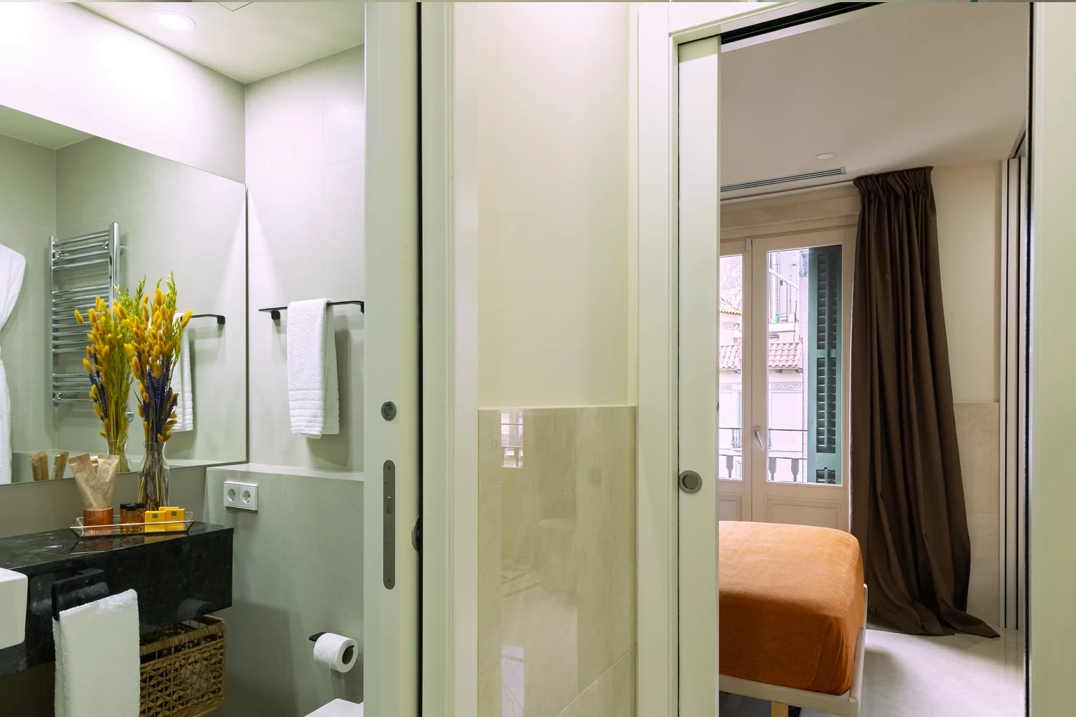 Choose from apartments with two or three bedrooms, two bathrooms, a spacious and bright living-dining room, and a fully equipped kitchen. Each apartment features modern air conditioning, soundproofing systems, and high-speed internet for your comfort and convenience. Decorated in a contemporary style, our apartments boast exclusive and natural finishing materials of the highest quality, creating an atmosphere of luxury and elegance. Strategically located in the vibrant center of Barcelona, these apartments ensure an unforgettable stay.